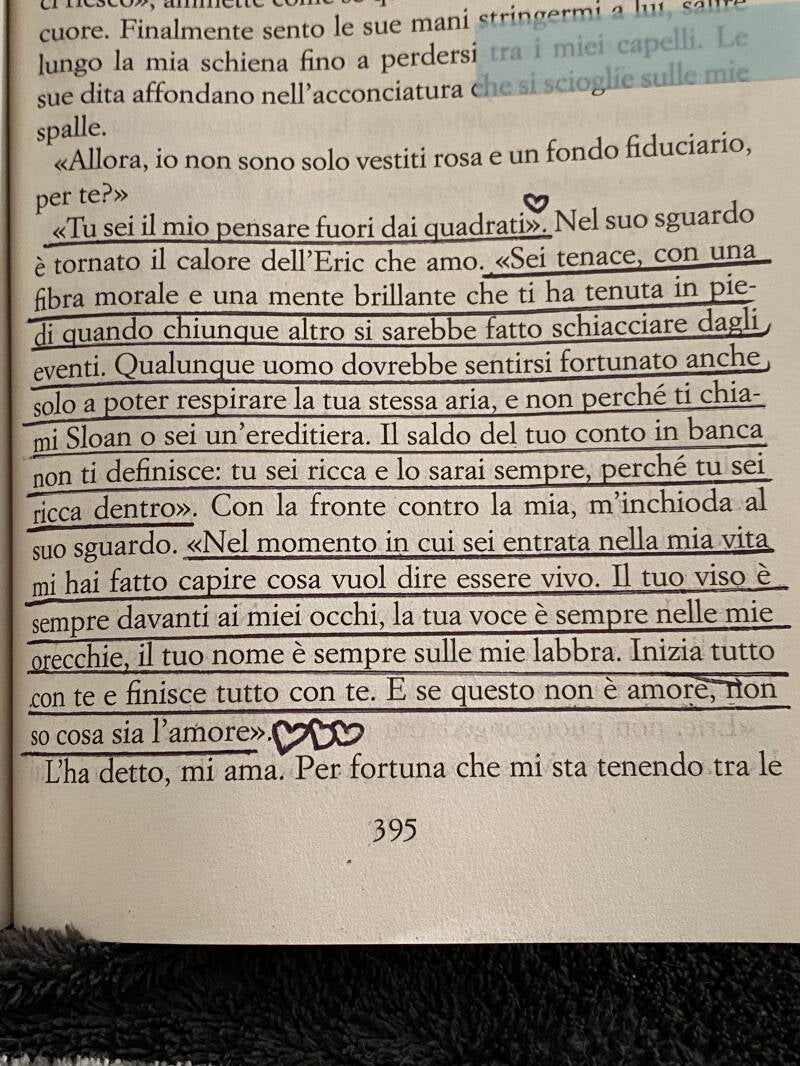 [...] <<Volevo solo che tu fossi davvero mia. Però non lo sei mai stata. Non del tutto. Mi sono sempre dovuta accontentare di una parte di te. Mentre è il mondo ad avere il resto. Non ti biasimo. Non per questo smetterò di amarti. Ma non ce la faccio. Non posso, Evelyn. Non posso vivere in continuazione con il cuore spaccato a metà.>>
